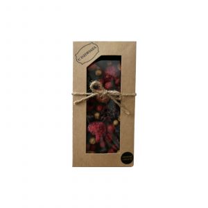 Skład: kakao Tobago,tłuszcz kakaowy, cukier trzcinowy, konopie, owoce liofilizowane.