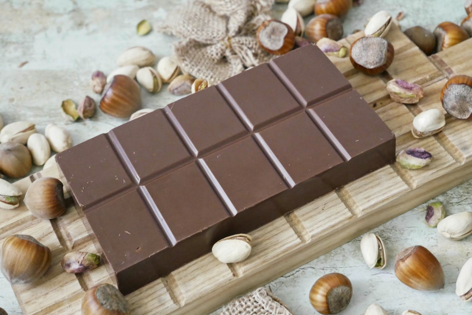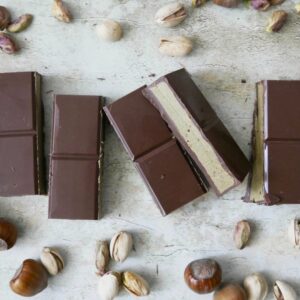 Poznaj niepowtarzalny smak czekolady mlecznej z nadzieniem nugatowo-pistacjowym – doskonałe połączenie aksamitnej mlecznej czekolady o 45% zawartości kakao z kremowym, delikatnym wnętrzem. Nadzienie powstało z połączenia aromatycznych pistacji i klasycznego nugatu na bazie orzechów laskowych oraz czekolady mlecznej, z subtelną nutą alkoholu, co nadaje całości wyjątkowej głębi smaku.